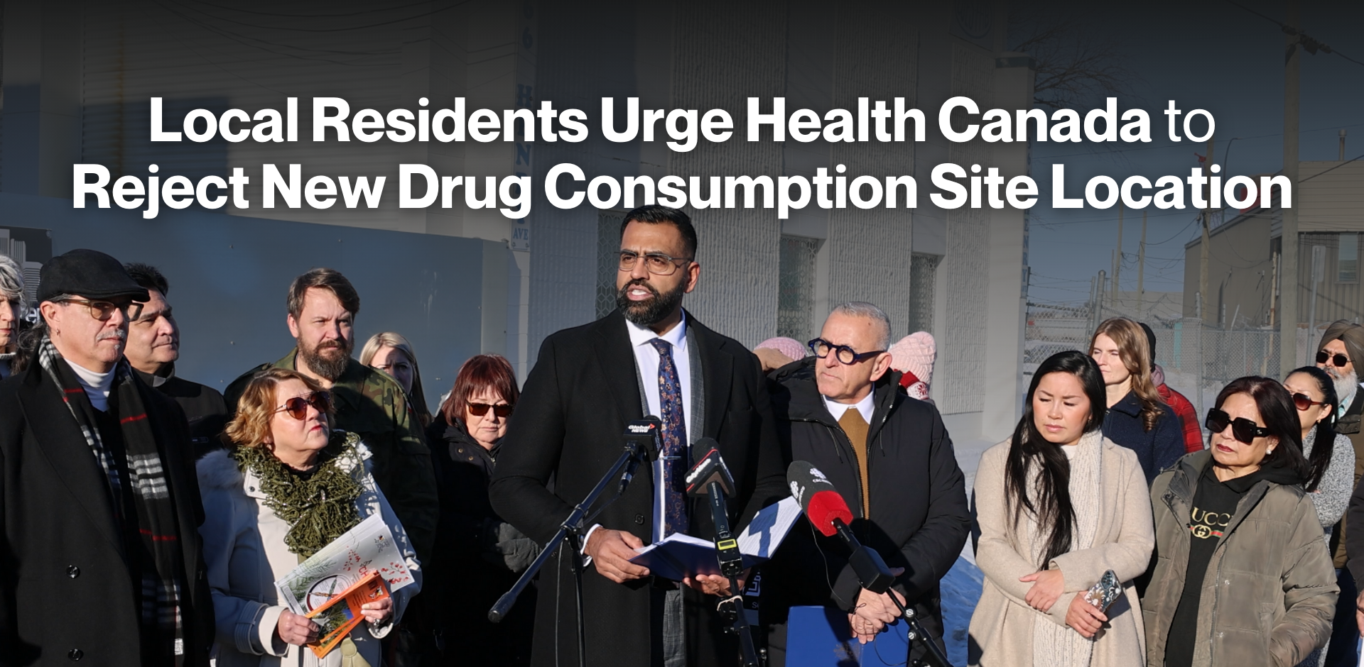 Progressive Conservatives joined with residents and businesses of Point Douglas to call on Health Canada to reject the proposed drug consumption site at 366 Henry Ave.